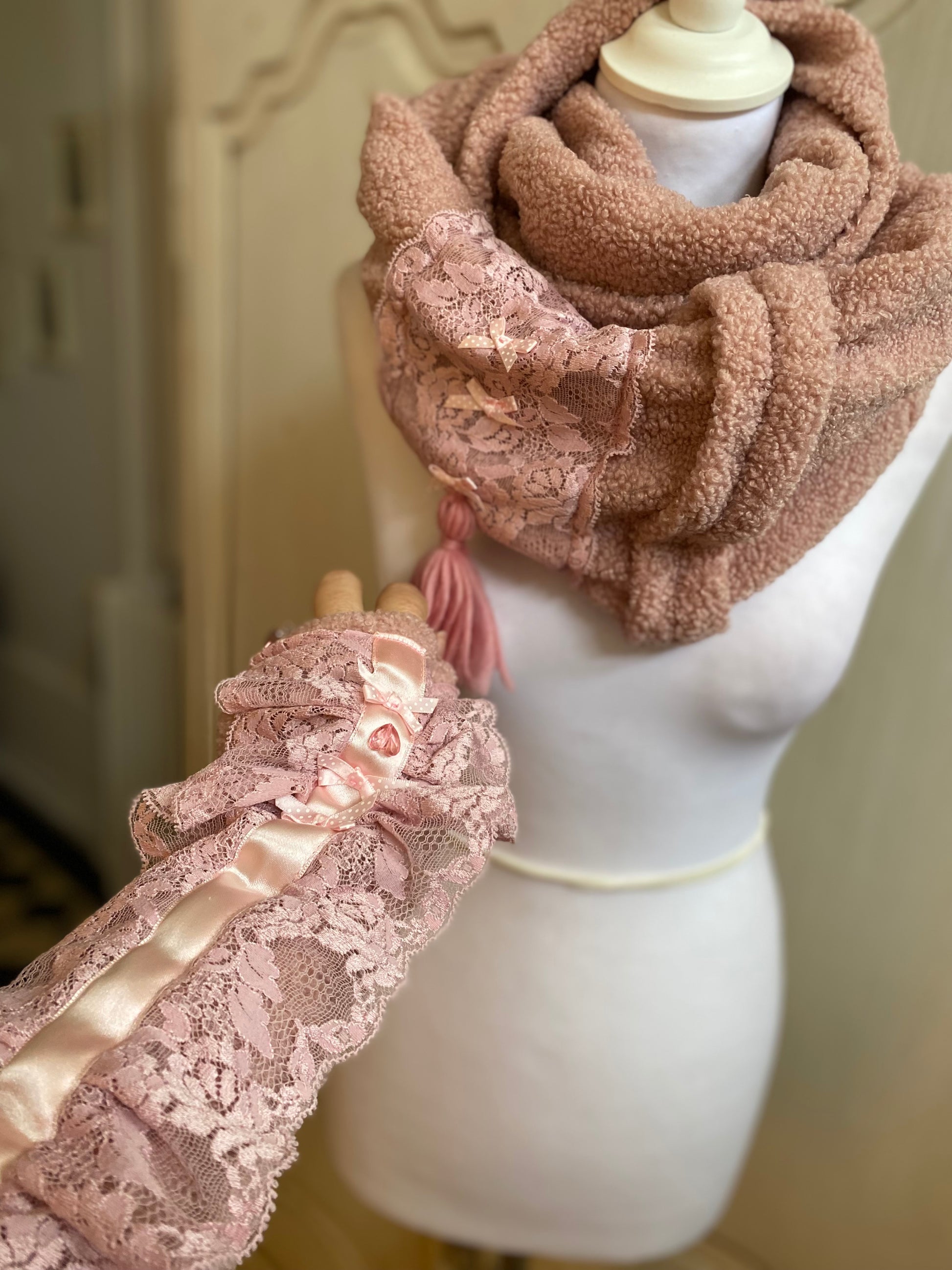 Snood deux tour de cou en tissu bouclette chaud et doux.