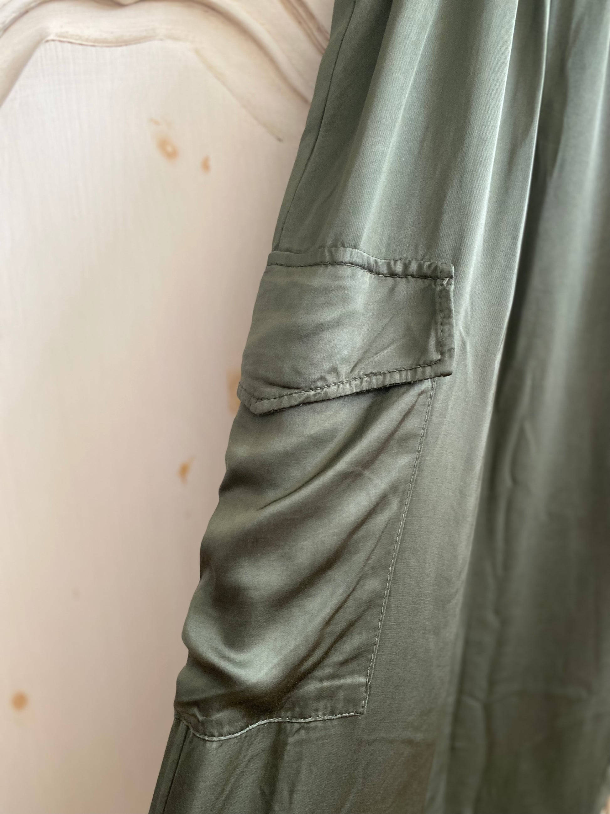 Pantalon cargo avec poches sur les côtés poche plaqué taille élastique au niveau des chevilles élastique pour une hauteur de 104 cm tour de cuisses à partir de l’entre cuisses 80 cm