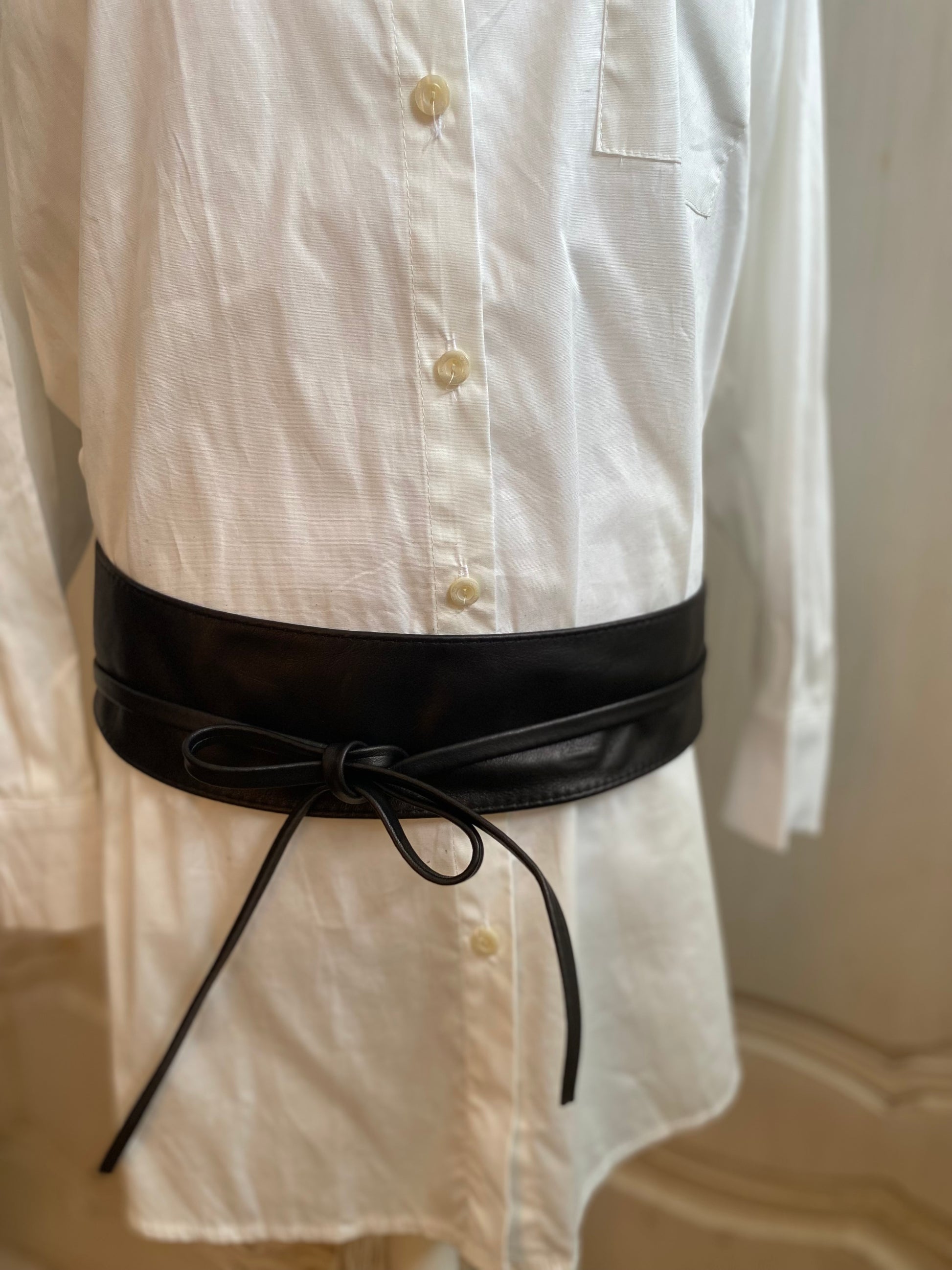 Ceinture en cuir vachette à nouer autour de la taille pour la souligner ou autour des hanches pour blouser une tunique ou une robe