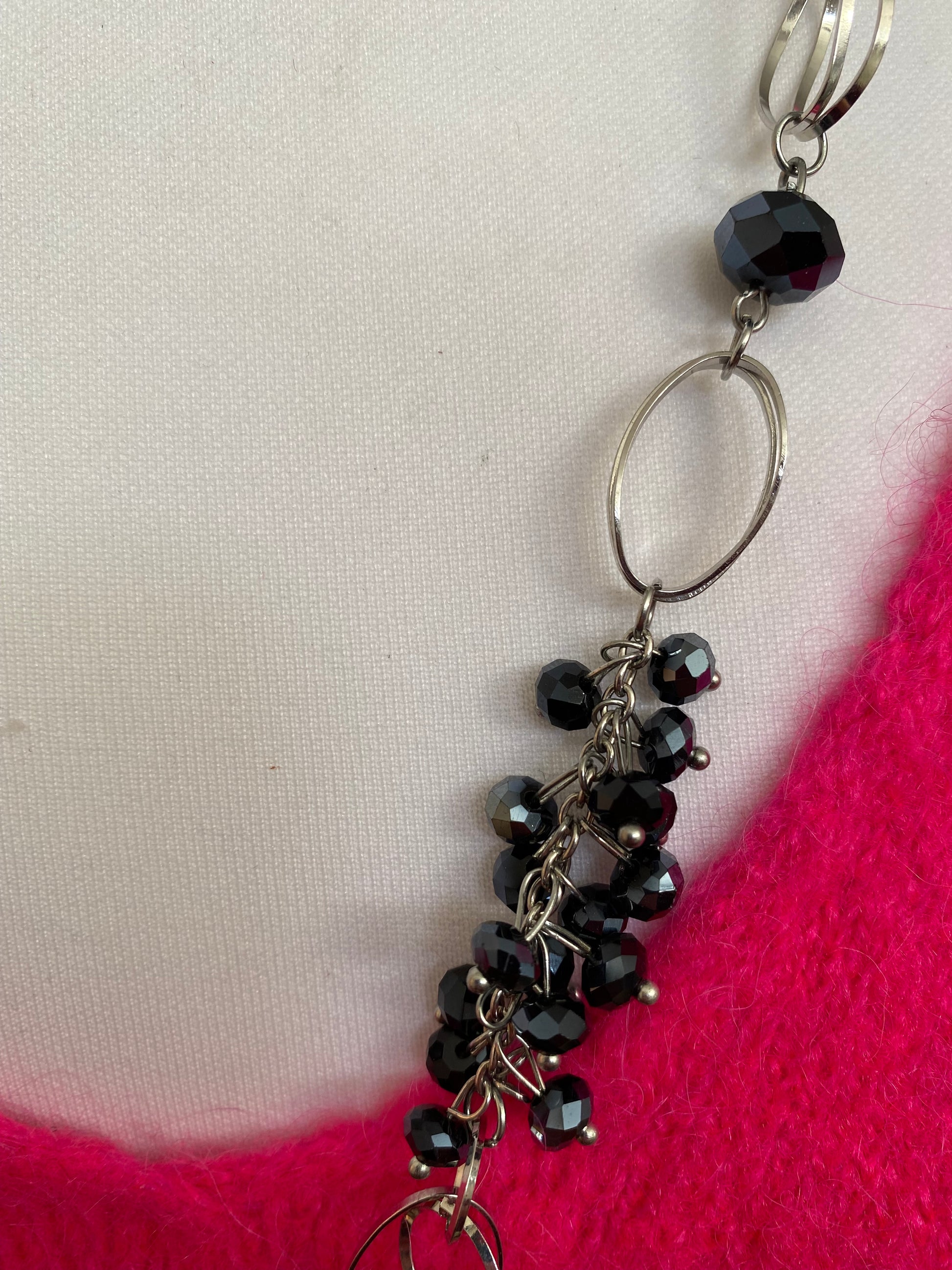 Sautoir en métal, argenté fin agrémenté de perles cristal gris anthracite par grappes Metal anti allergiques.