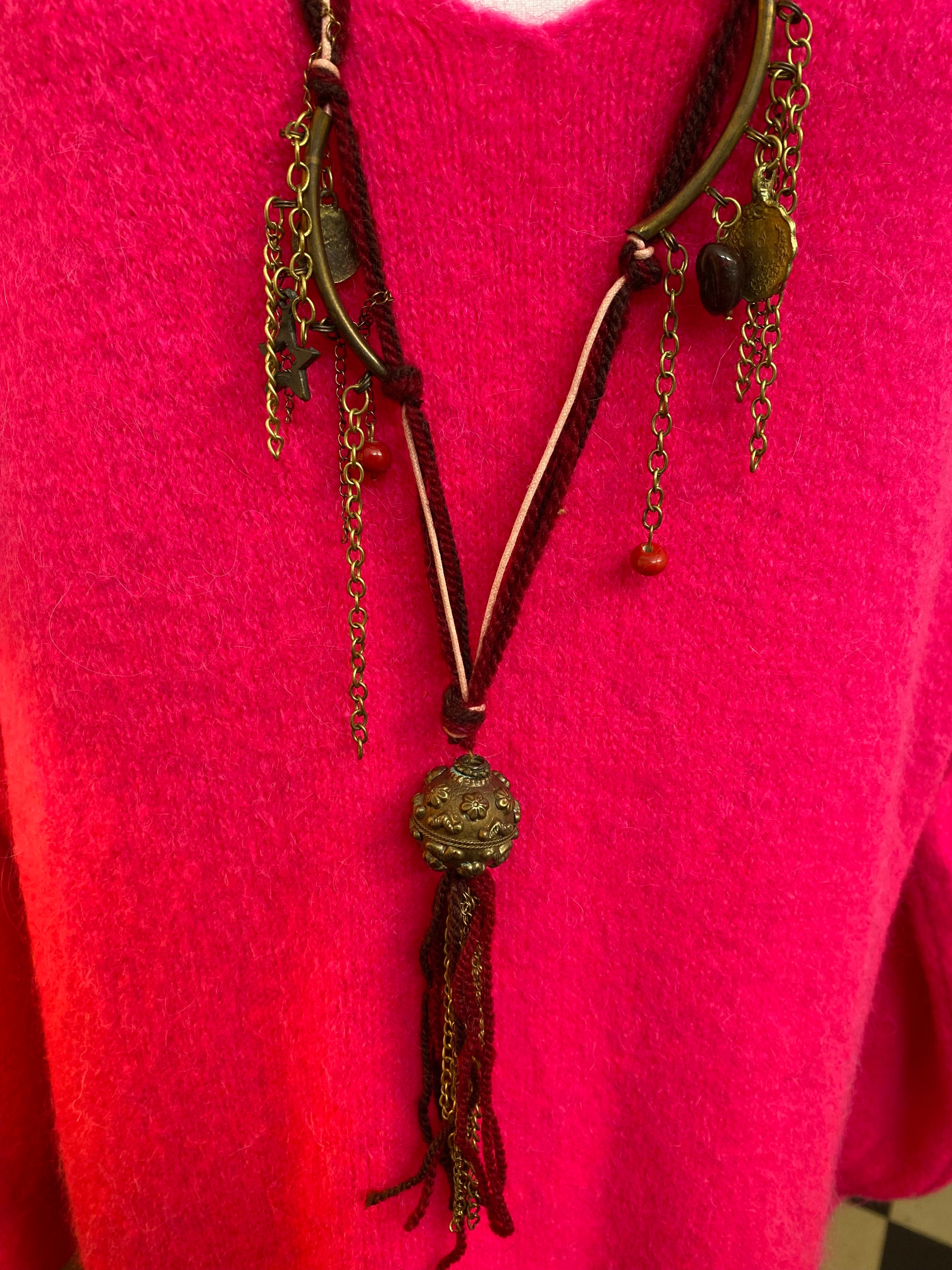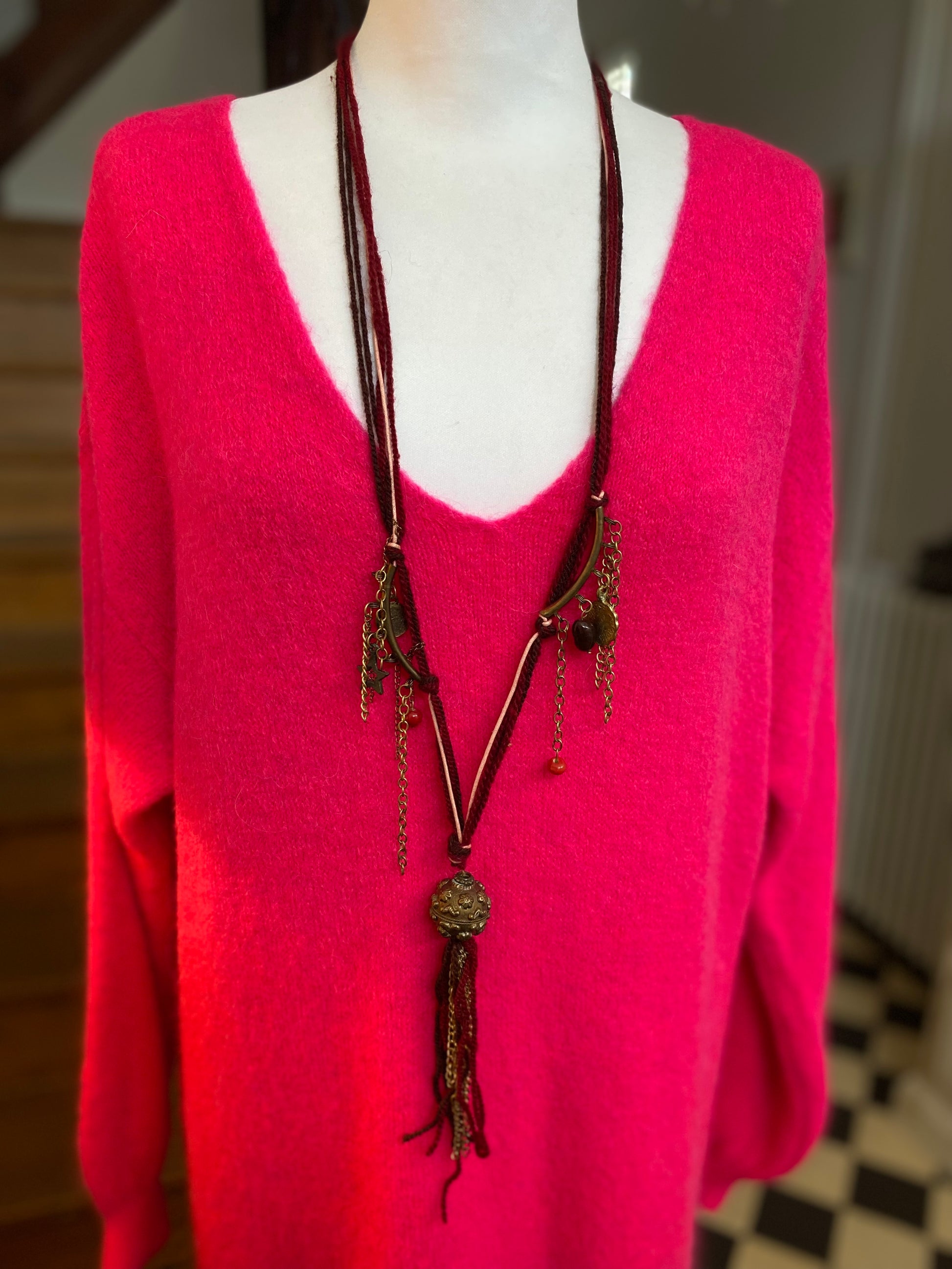 Sautoir au style indien métal doré mate anti allergique pâte de verre.