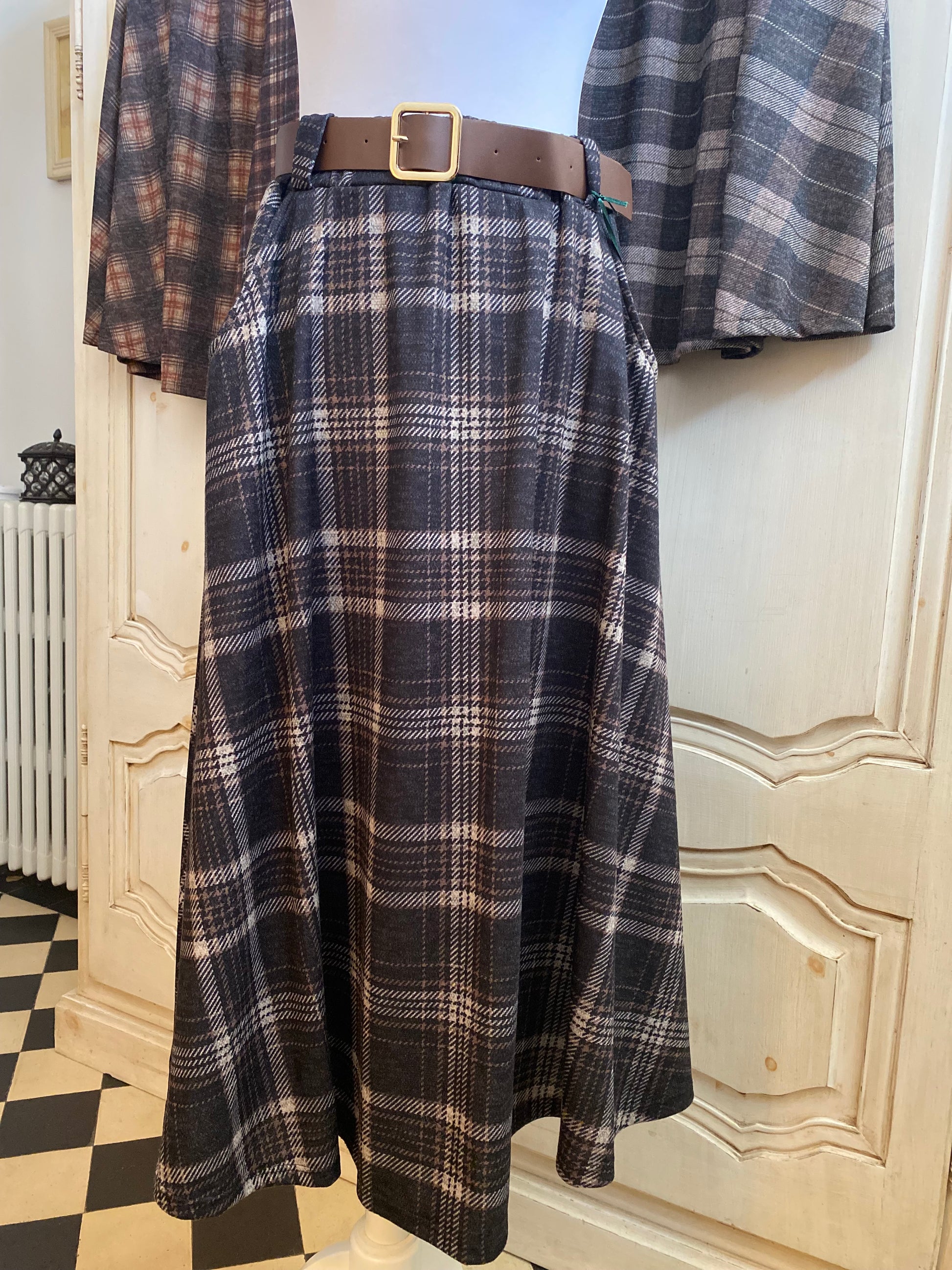 Jupe coupe double trapèze poche sur les côtés, taille élastique, ceinture fournie.