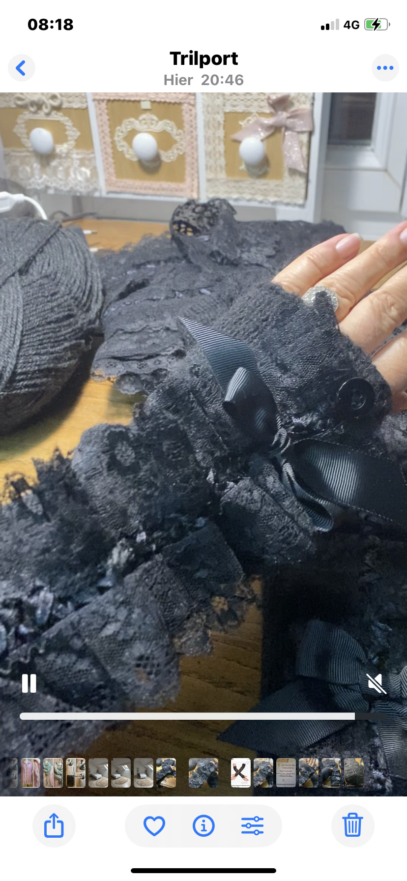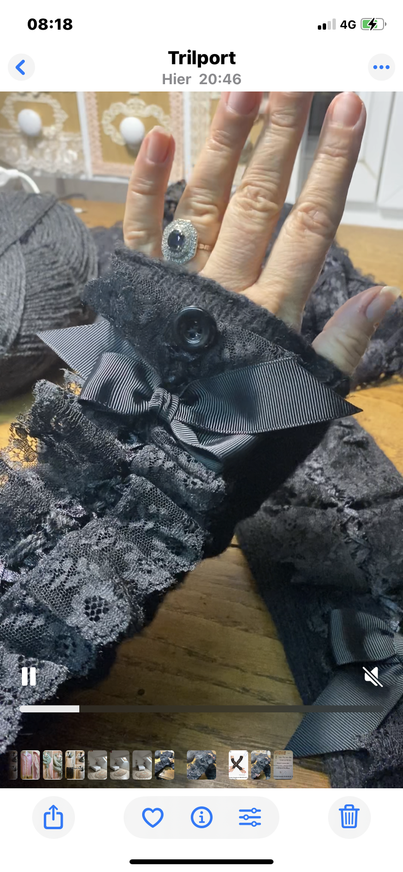 manchon mitaines en acrylique et mohaire surmonter d’une dentelle noire, taille unique, lavage à la main.