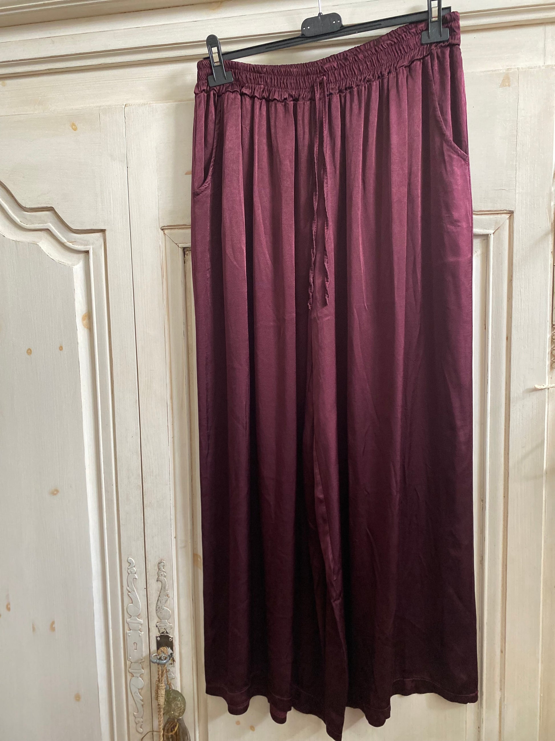 Très belle qualité de tissu avec un tombé lourd comme de la soie, doux, comme du satin poches sur les côtés, taille élastique, hauteur 104 cm, lavage délicat, conseiller