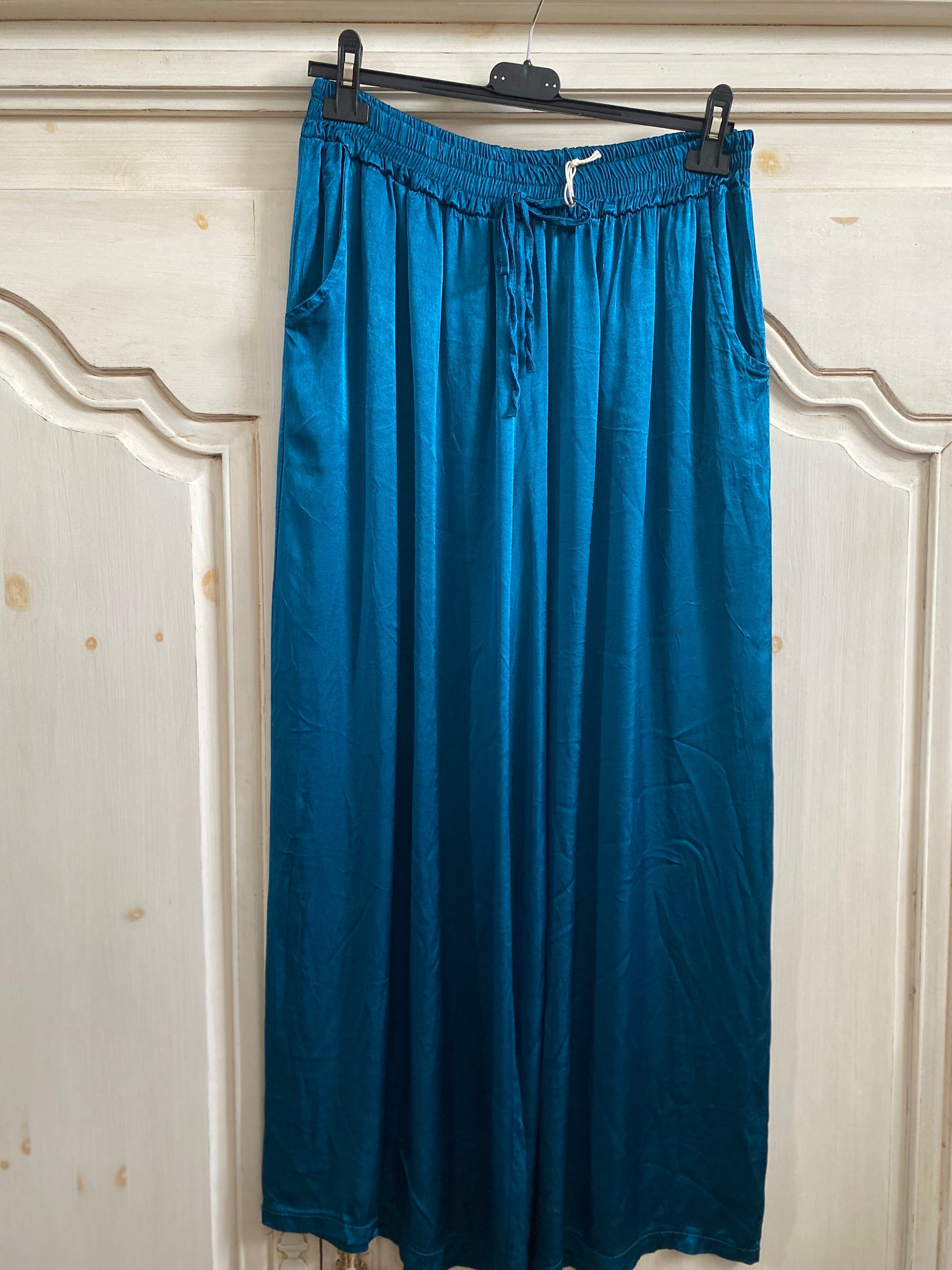 Très belle qualité de tissu avec un tombé lourd comme de la soie, doux, comme du satin poches sur les côtés, taille élastique, hauteur 104 cm, lavage délicat, conseiller