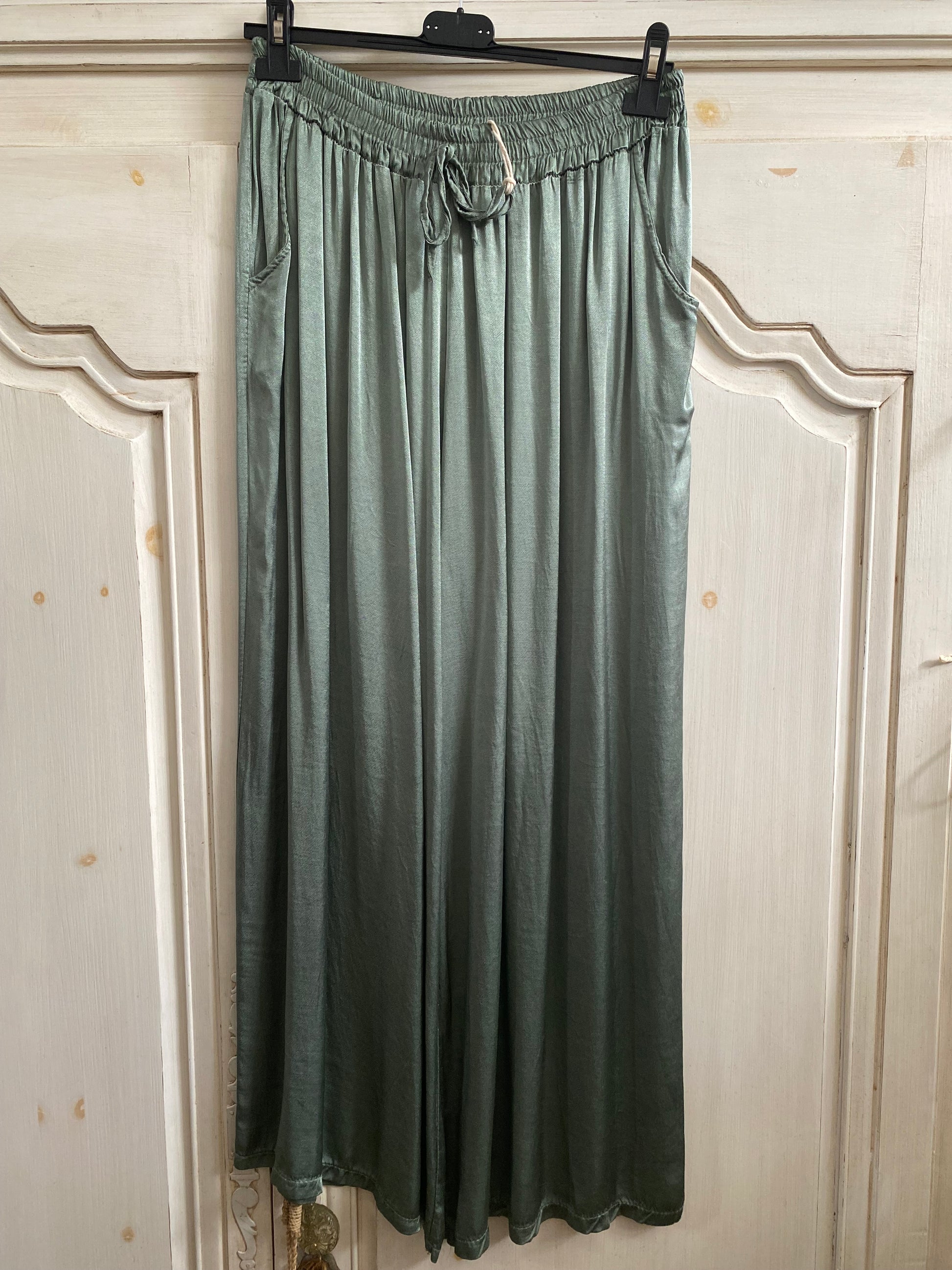 Très belle qualité de tissu avec un tombé lourd comme de la soie, doux, comme du satin poches sur les côtés, taille élastique, hauteur 104 cm, lavage délicat, conseiller
