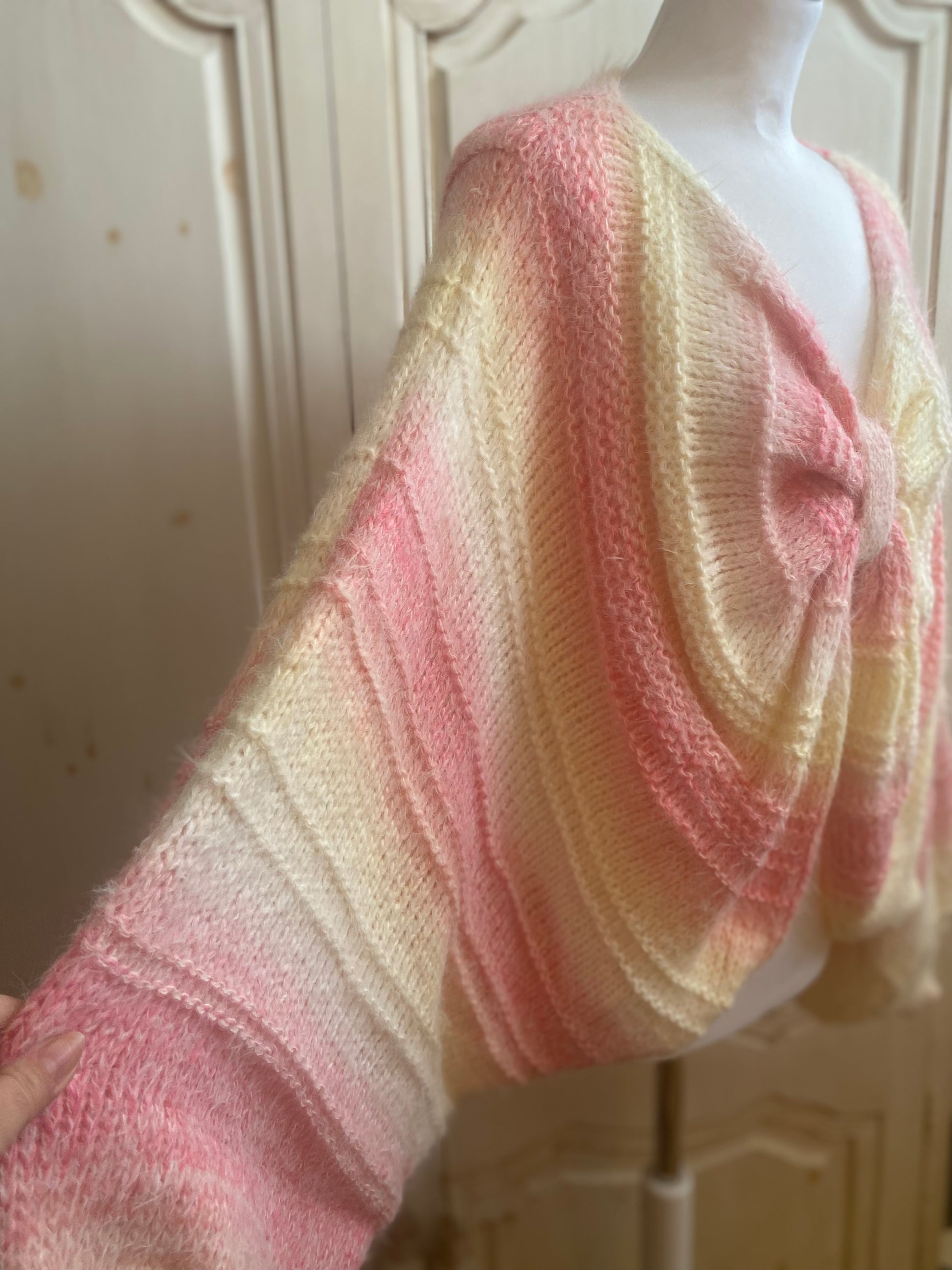 Superbe pull, maille épaisse, souple à la fois.. manches large ballon col en V modèle déstructuré sur l’avant.