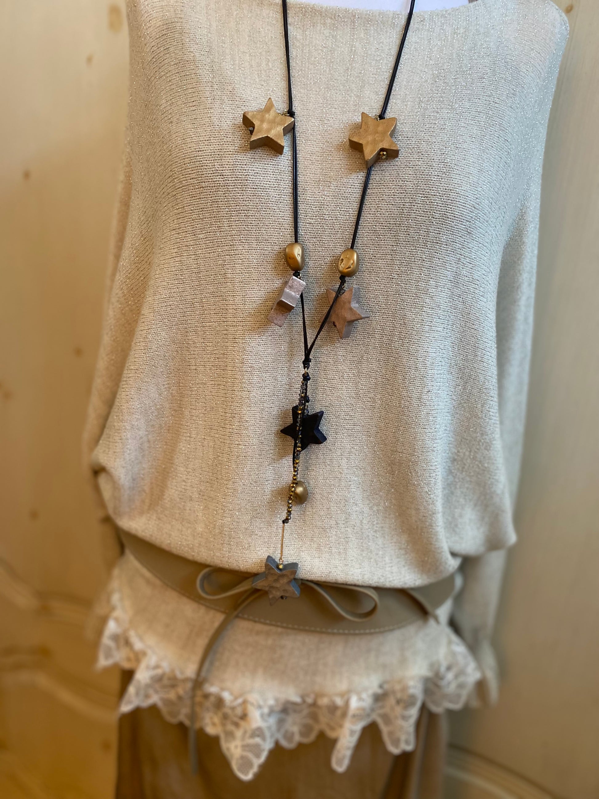 Joli pull, crème aux manches ondulées et aux finitions dentelles dans le bas, une maille souple, lurex, acrylique et viscose eladthanne manches Chauve-souris col, bateau.