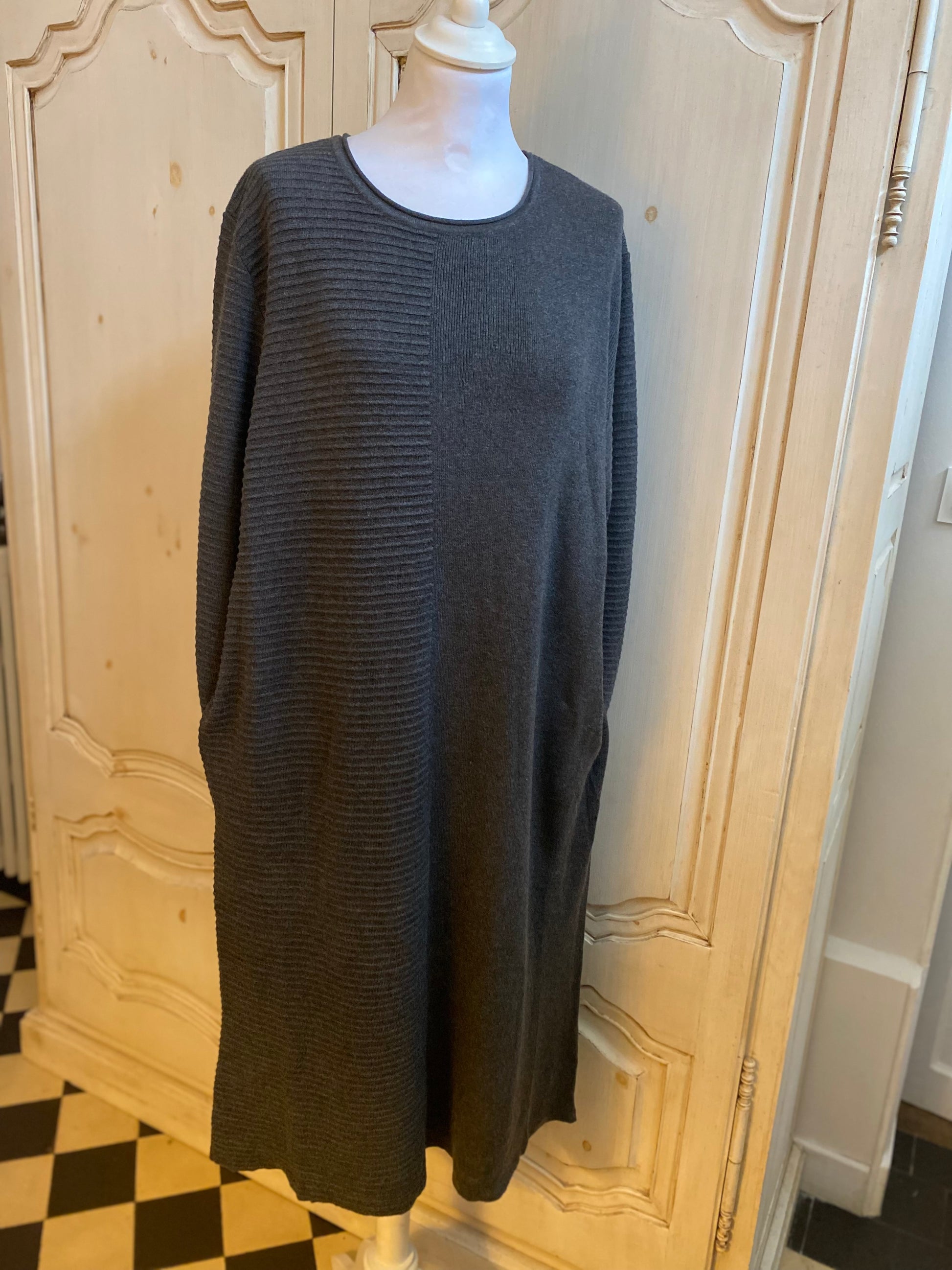 Très très belle, maille souple système 3D sur la moitié de la robe et les manches tissu en 100 % acrylique, semi épais col rond manches longues poche sur les côtés, coupe Oversize