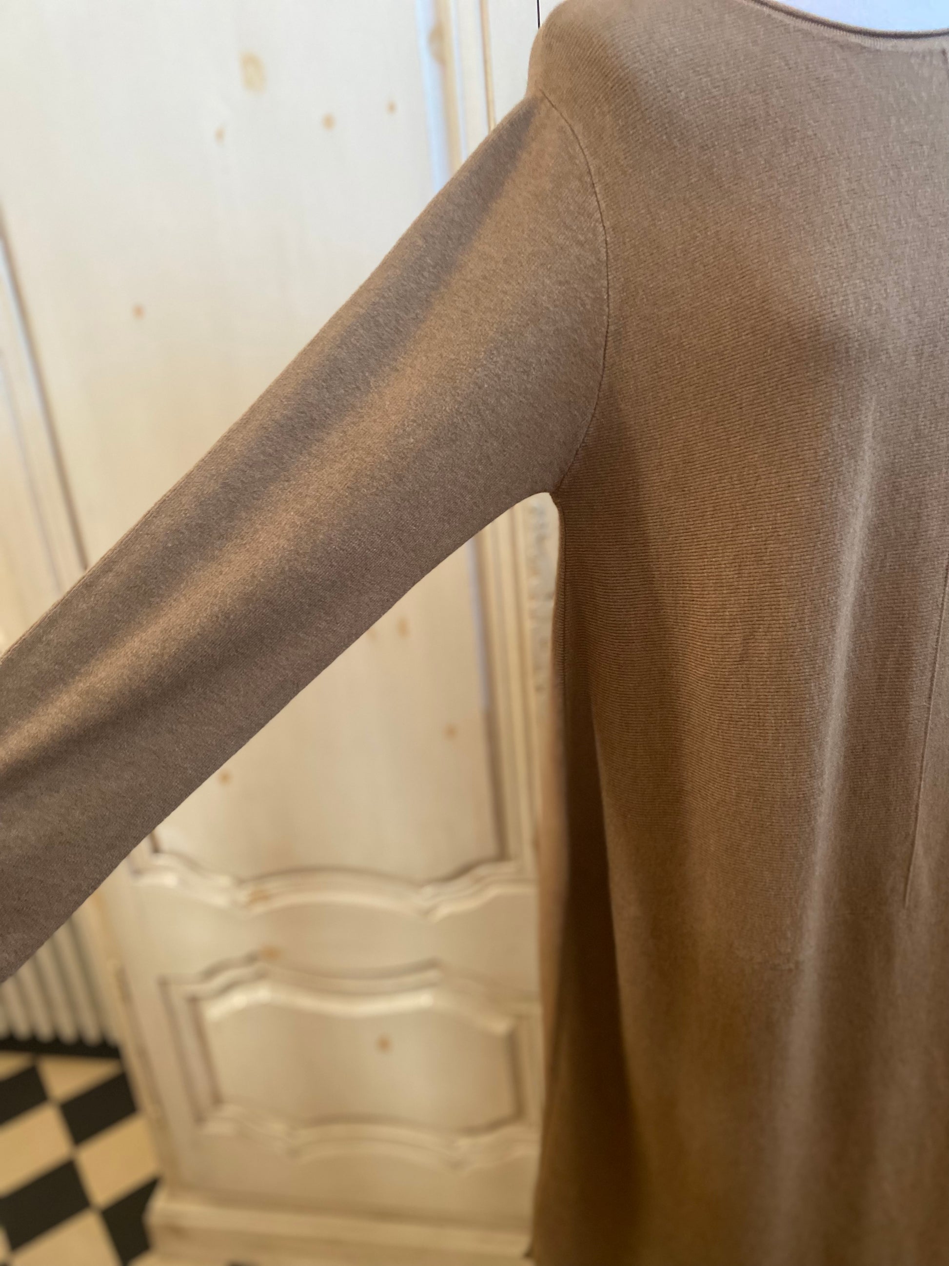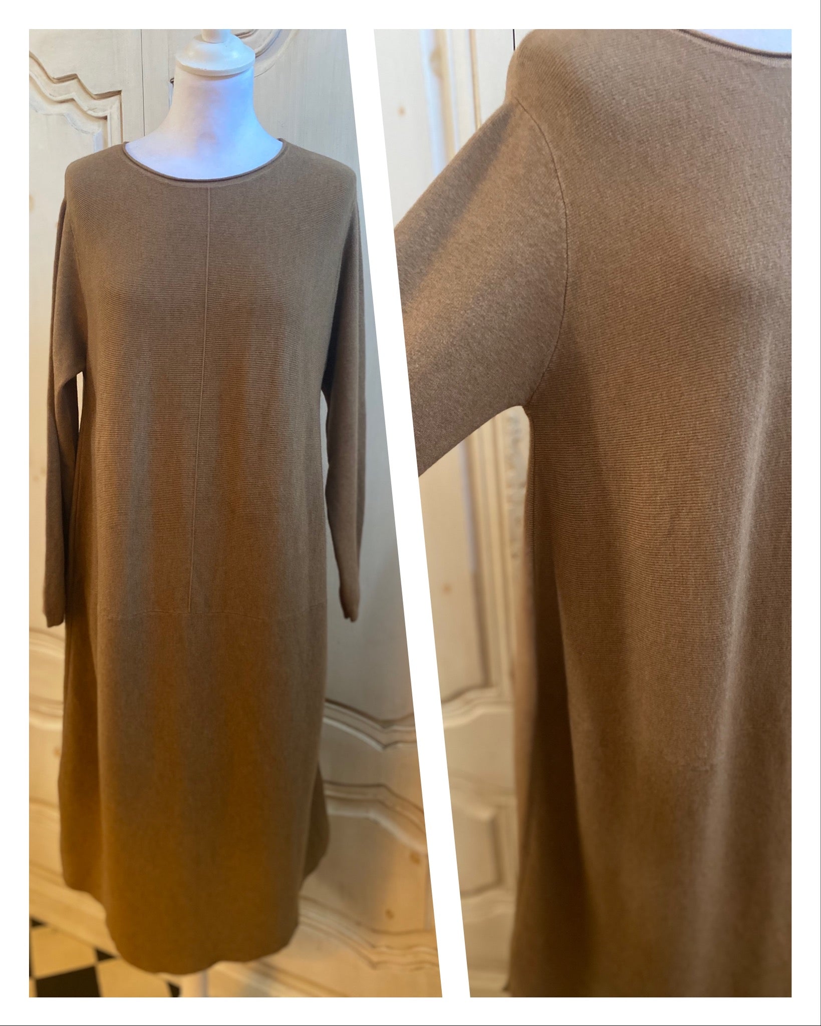 Robe mi longue en maille souple elasthanne mais dense manches longues col rond coupe Oversize droite fendue sur les côtés