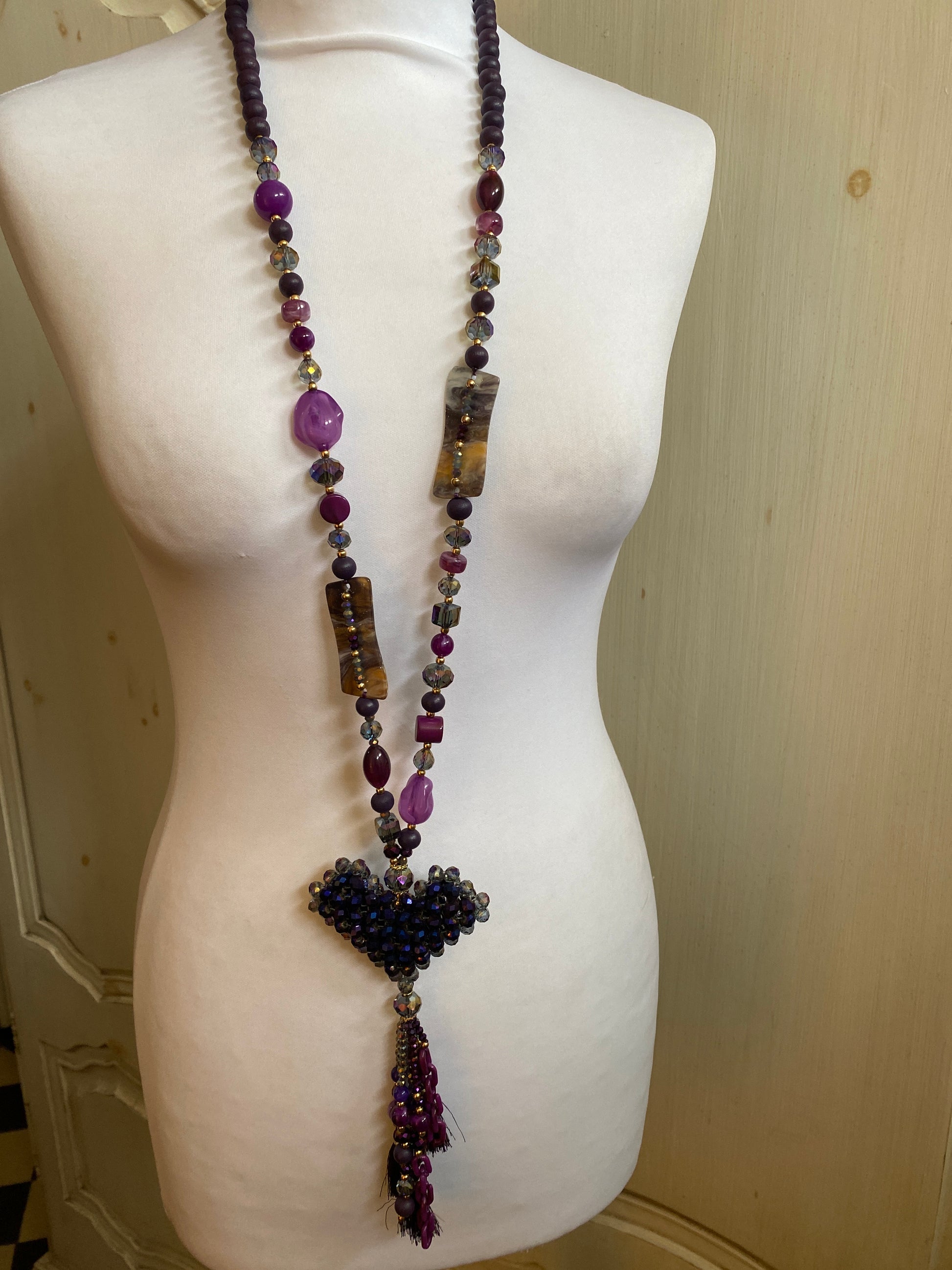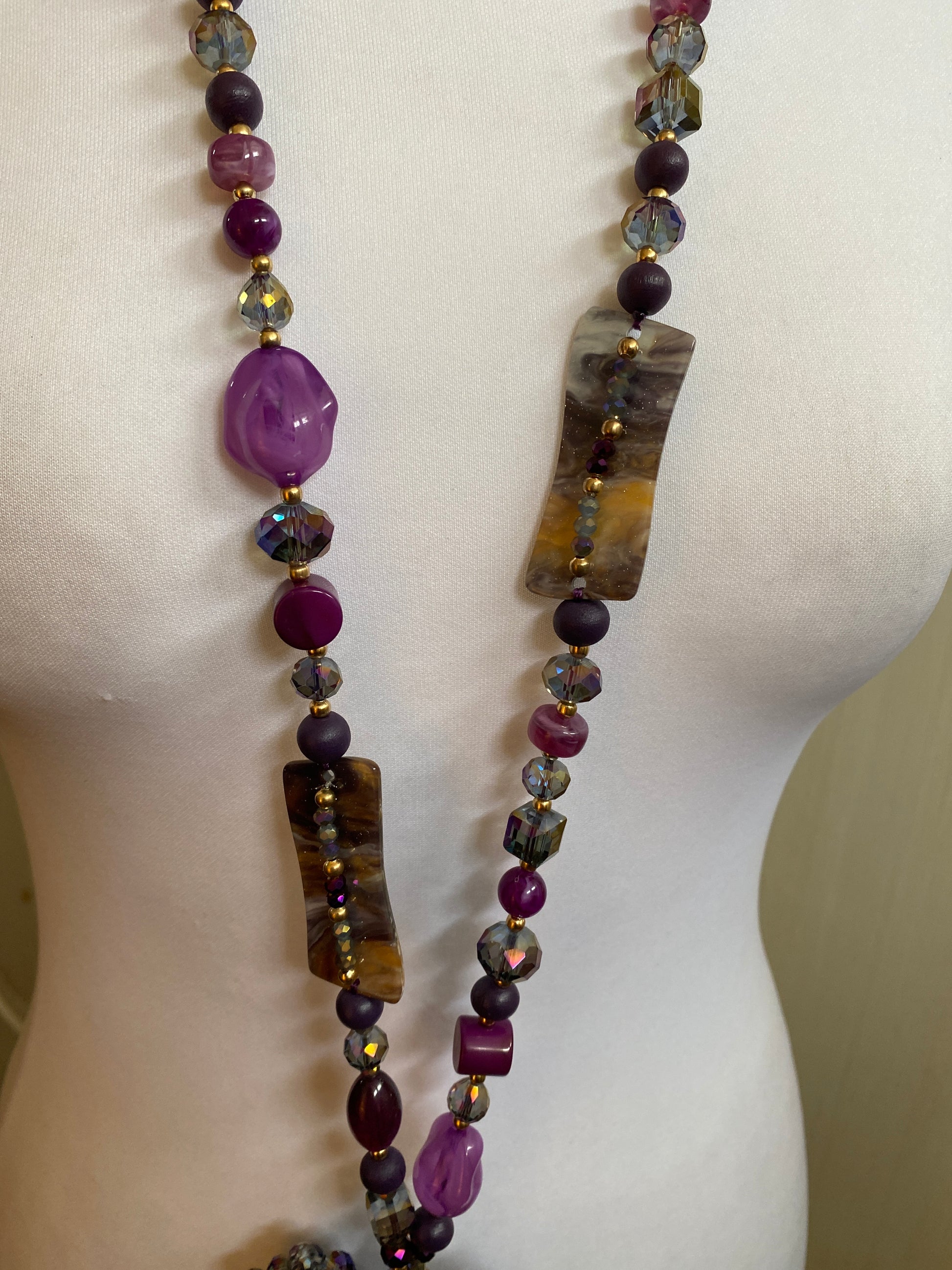 Superbe sautoir en cristal, nacre, perles résine de synthèse, un mélange judicieux dans les couleurs taupe, chocolat, marron, cappuccino pour un effet irrésistible