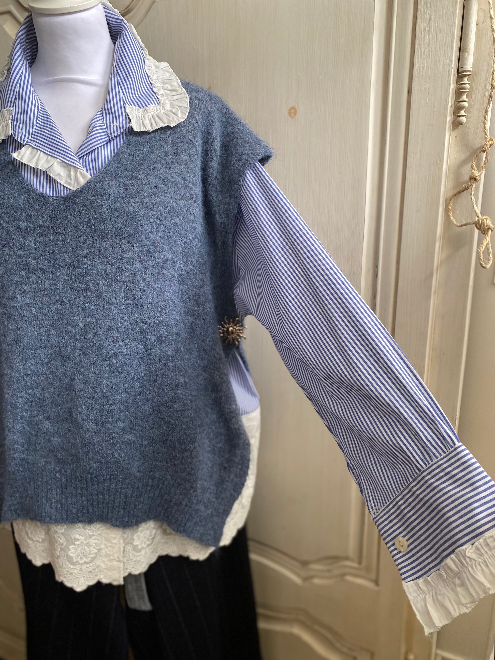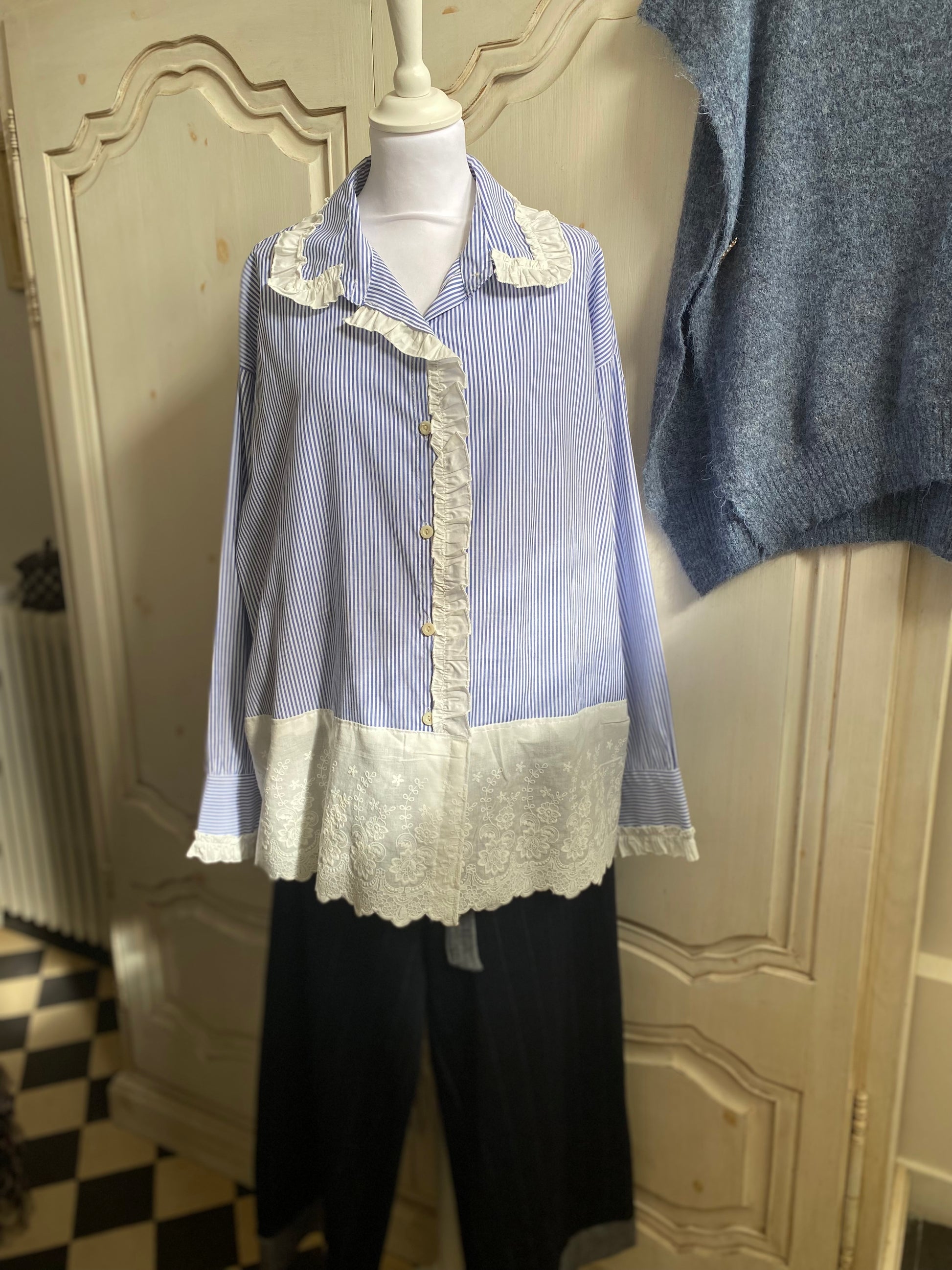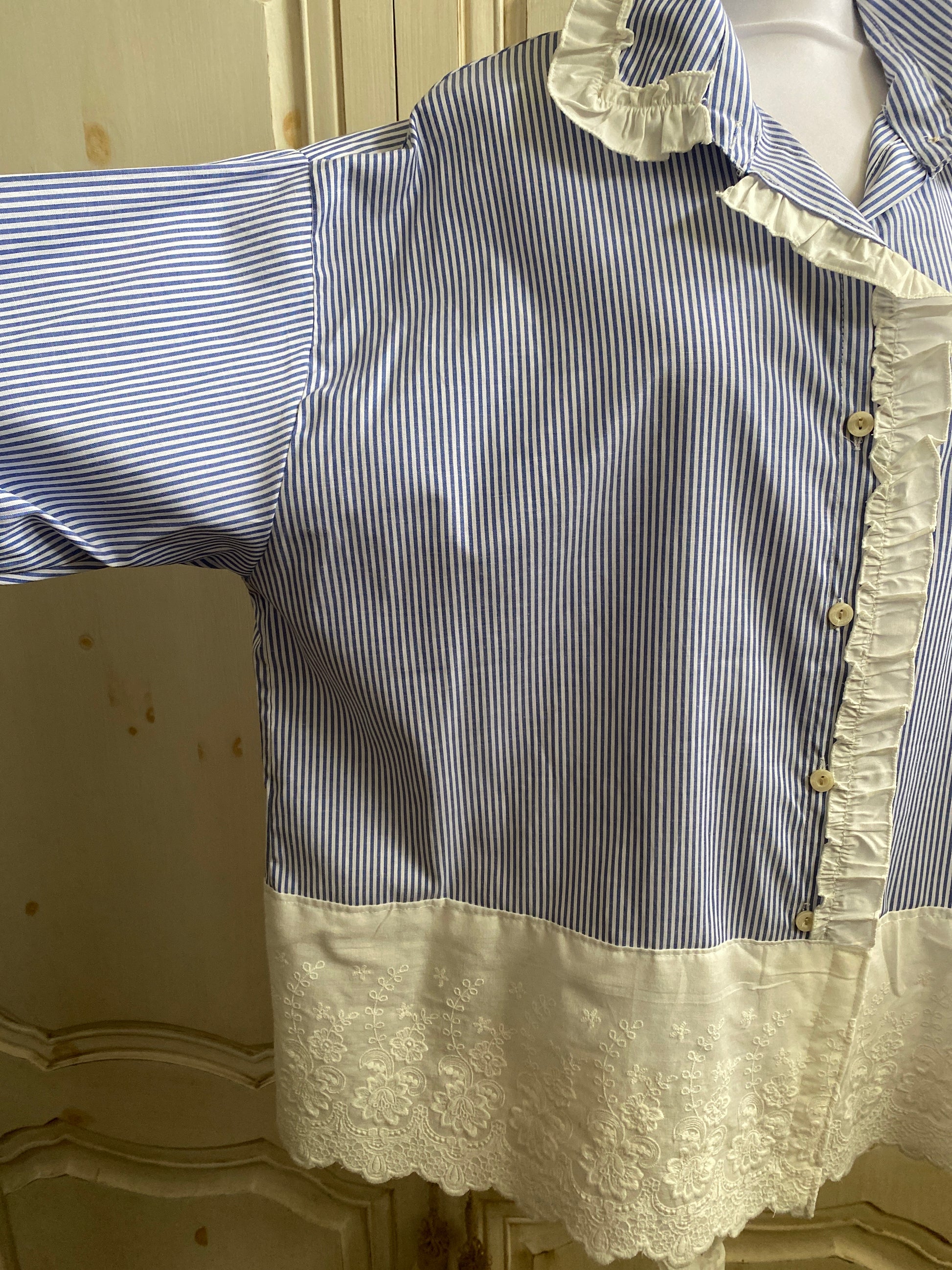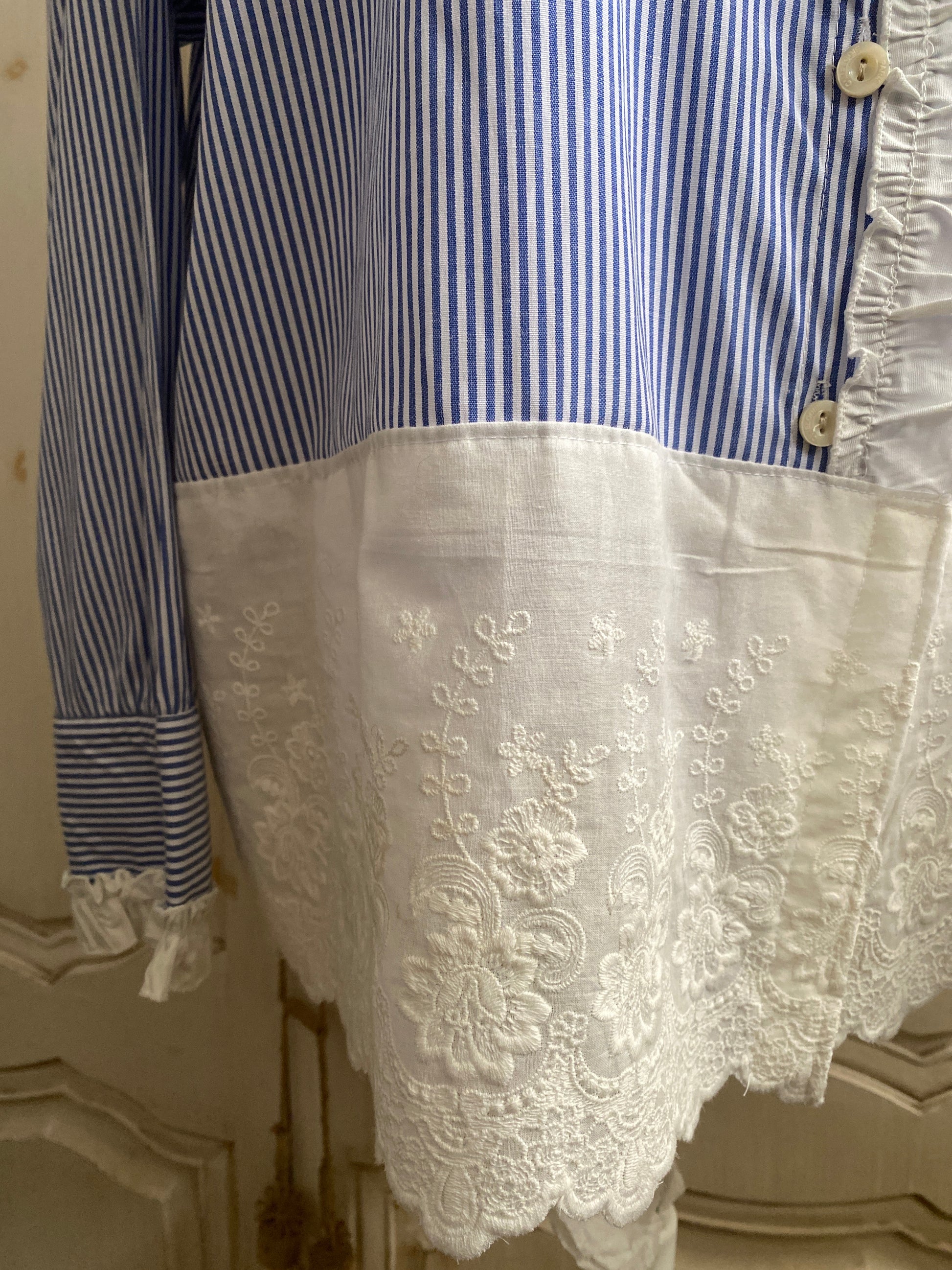 Création Lili Patchoulie en coton Bayadère manches longues finition dentelle large brodée dans le bas